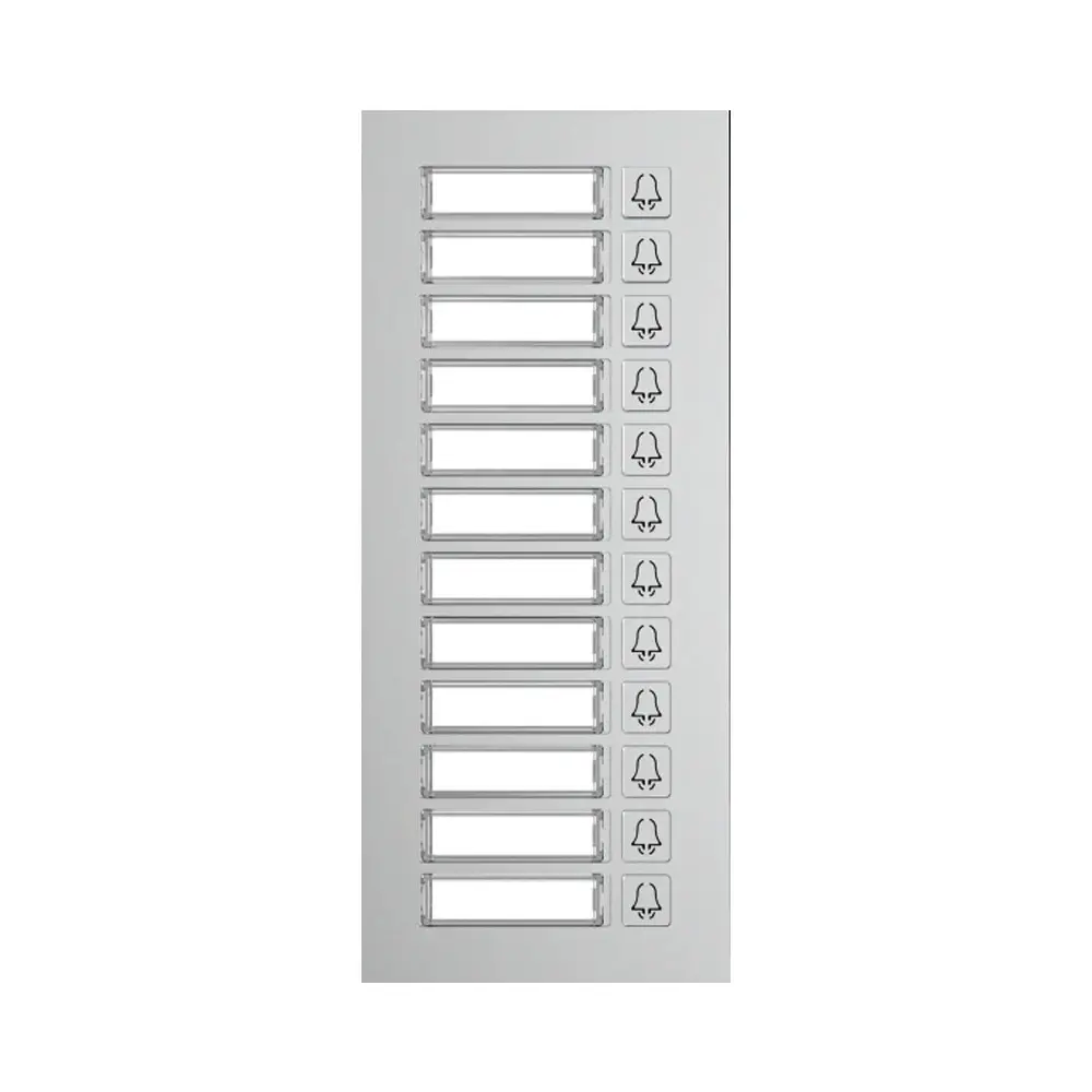 Akuvox MD12 är en bakgrundsbelyst knappsats för utökning av direktvalsknappar i installation med porttelefoner i serien R20B-, och R20K.