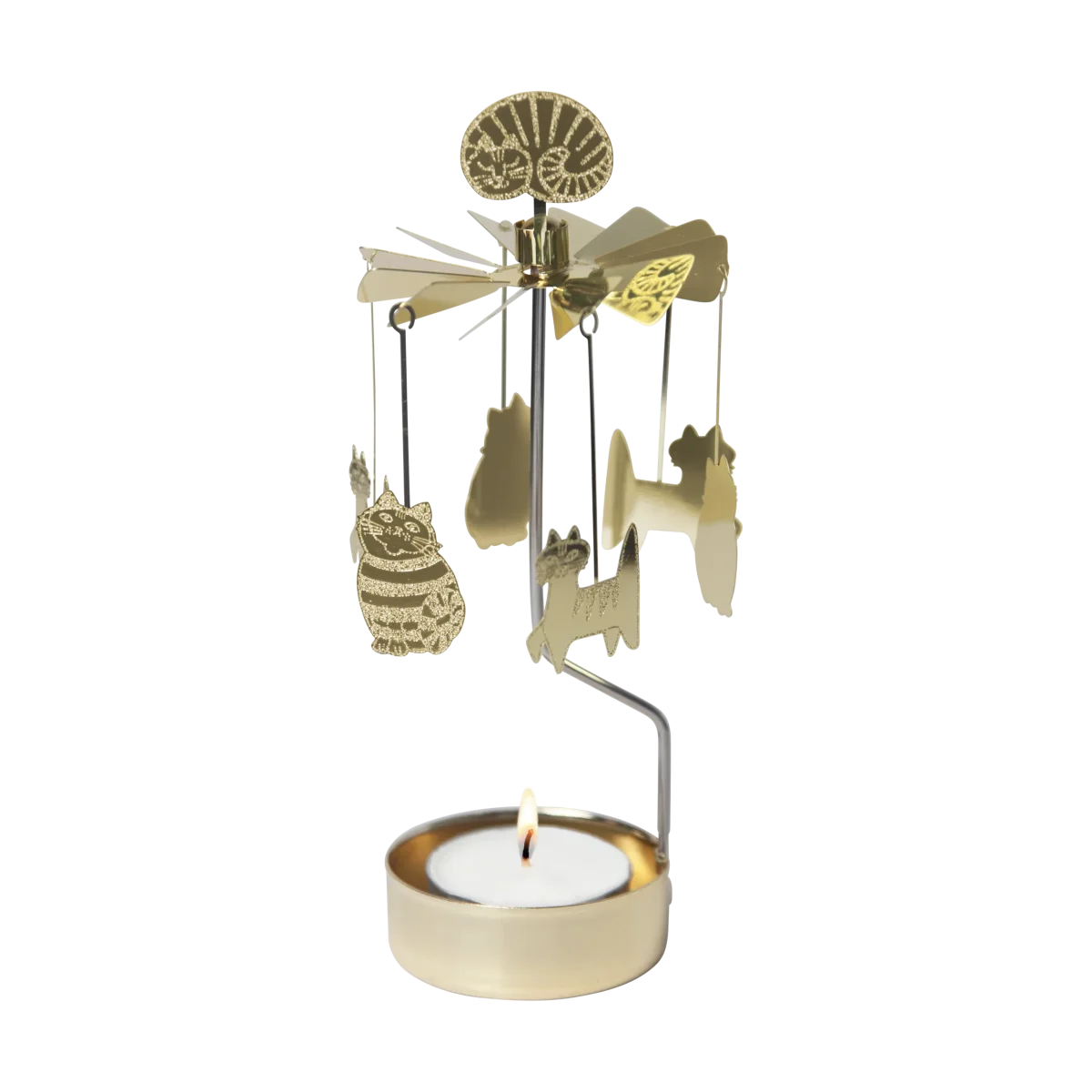 Skapa magi i hemmet med Lisa Larsons älskade katter. När värmen från ljuset stiger får katterna liv och snurrar runt i en lekfull dans som fyller rummet med en stillsam och mysig känsla. En älskad julfavorit som är lika uppskattad att ge bort som att själv njuta av år efter år. Höjd 16 cm.