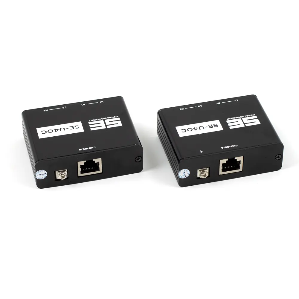 Balun SE-U4OC, 2x stereo RCA över Cat5/6, max 1000m.