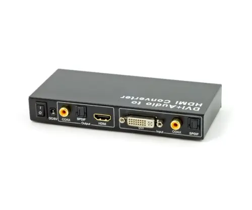 Denna produkt konverterar en DVI signal + coaxial eller toslink audio till HDMI. Omvandlaren sammanför digitalljud och video ut på HDMI-porten. Förutom HDMI utgång finns även coaxial eller toslink bypass. Produkten klarar max upplösning 1080P@60Hz.