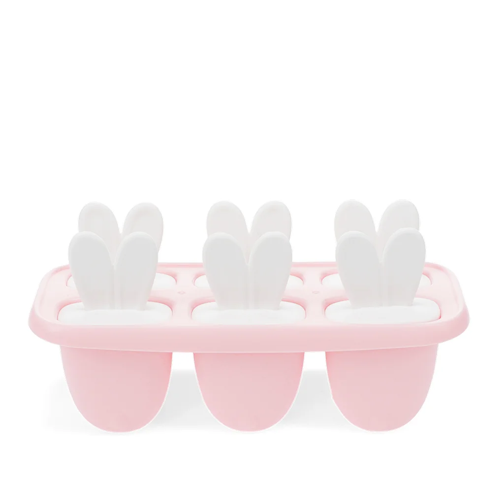 6 st isglassformar i formen av en söt kanin; Bonnie the Bunny, där kaninens öron är själva pinnen att hålla i. Se till att alltid ha glass i frysen. Ett lätt sätt att få i barnen vätska och frukt varma dagar, eller för onda halsar.