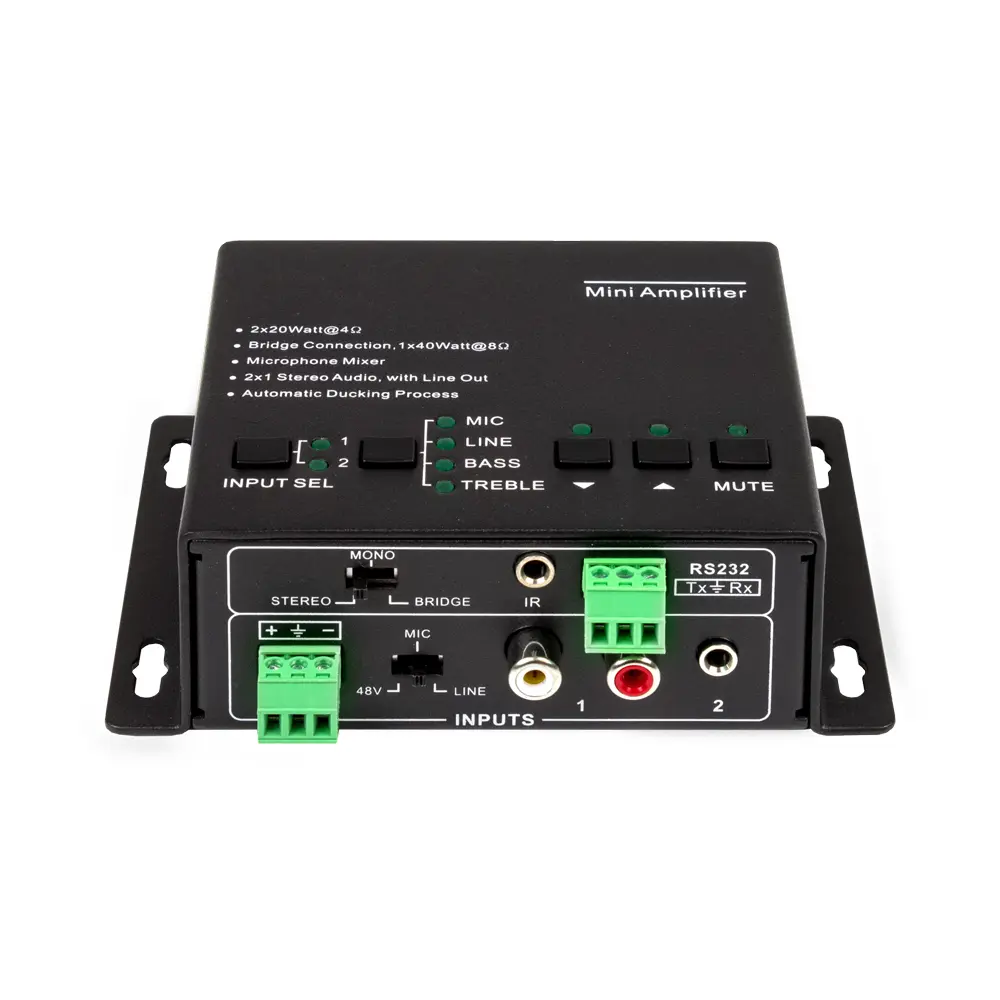 Smidig liten miniförstärkare som lämnar 2x 20W i 4Ω/8Ω eller 1x 40W i 8Ω.